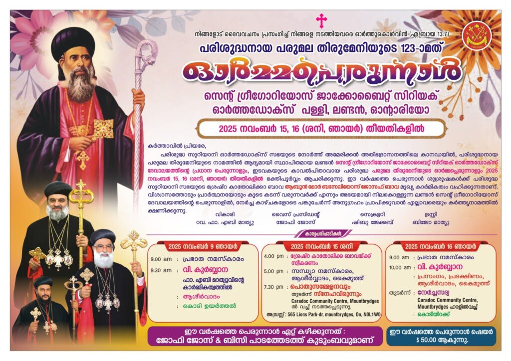 SERVICES Welcome to Our ChurchSt. Gregorios Jacobite Syriac Orthodox Church – London OntarioOUR SERVICES HOLYMASS EVERY SUNDAY 9 : 30 AM TO 12 : 00 AM Welcome To Our Land FOLLOW US Facebook Youtube+1 647 854 2239 stgclondon@gmail.comAddress: 86 Wellington Avenue, Appin Ontario NOL 1AO